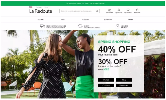 法国时尚平台LaRedoute(乐都特)创建于1837年,1995年开始从事网络销售,现覆盖120多个国家,拥有70多个品牌。