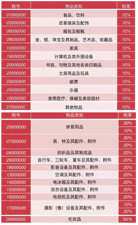 其中,商品税率按照《中华人民共和国进境物品进口税率表》执行。大致如下: