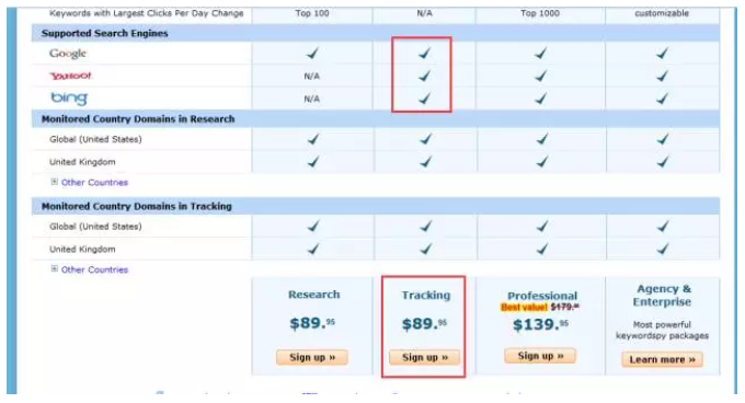 当然如果你想查看不同搜索引擎上的广告,比如你要查看你的竞争对手,在Yahoo,在Bing上的广告,或者你想看到更多关于竞争对手的资料,那么你可以选择付费,比如$89.95美金一个月,如下图: