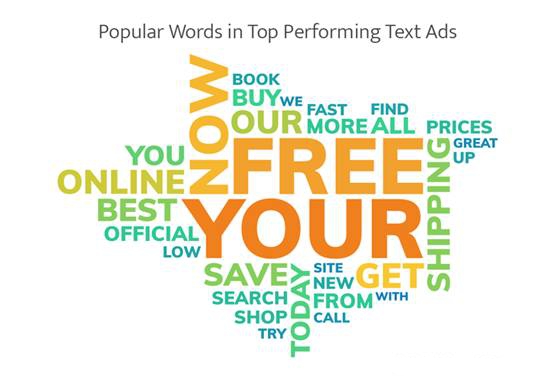 据数据显示,335条品牌广告文本中,最常出现的词按顺序是:Your、Free、Now、Get、Online、Our、Save、Best、Shipping、You。