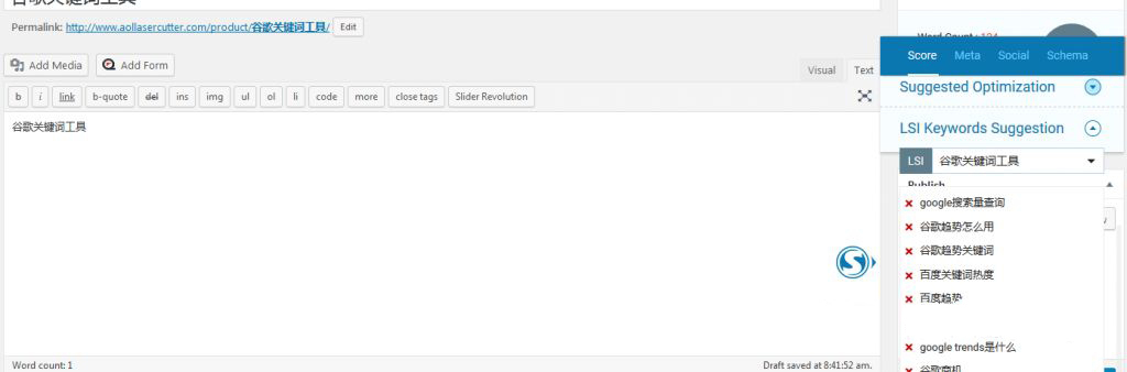 2.在编辑文章或是产品页面的时候,输入关键词挖掘相关词。