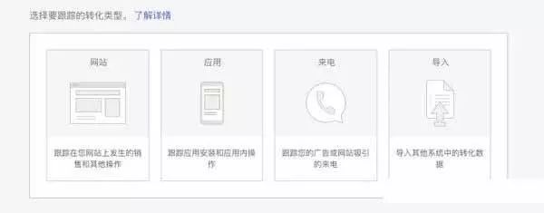 下面,我们以使用次数最多的跟踪网站上的转化为例,选择要跟踪的转化类型为网站后: