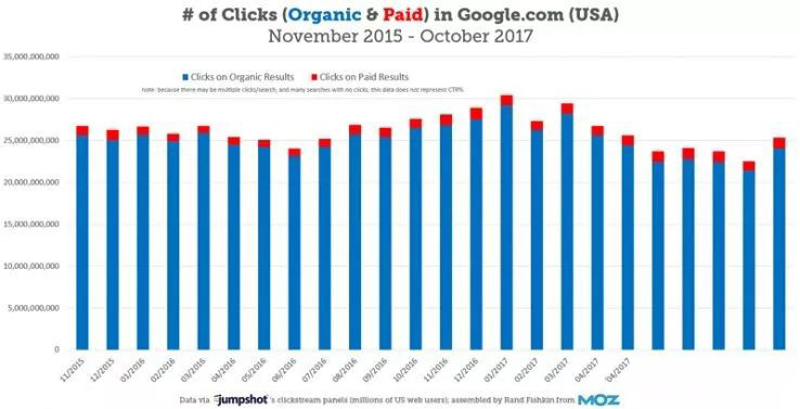 在2017年,我们看到了一个相关趋势的开始——在PC和手机上谷歌搜索产生的点击量减少了。我不认为那是昙花一现。在我看来,谷歌的行动主要围绕着一些功能丰富的网页摘要、知识面板和更好的即时回答,结合更强势的广告和缓慢的搜索增长(至少在美国),将导致2018年的SEO机会略低于我们在2017年的水平。