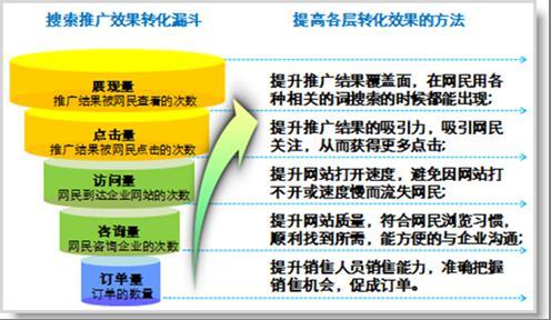 从上图中可以看出,展现量、点击量、访问量和咨询量是直接和电商人员的工作能力有关,公司信息在网上展现量的多少,有多少信息被客户点击查看,有多少是客户点开网站后认真访问,最后访问网站页面的人数又有多少咨询?这些就是考核电商人员的水平。电商推广与产品销售的关系,用男女恋爱的“爱情攻略”来比喻,电商推广就是男女恋爱中的“媒婆”,如果将电商的工作流程比喻为“爱情攻略”中的“找到你→看上你→调戏你→爱上你→娶回家”五部曲, 那么电商能起到的作用就是前面四部曲。后面的“娶回家”第五部曲,是男女之间在一起后两个人的行为,和电商的“媒婆”角色没有很大的作用了。