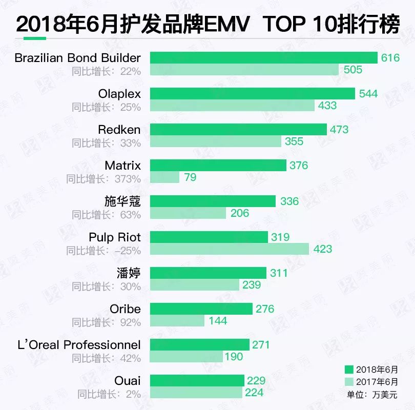 护发品牌Brazilian Bond Builder(又叫作“b3”)仍以700万美元的赢得媒体价值位居榜首,比去年同期增长了16个百分点。