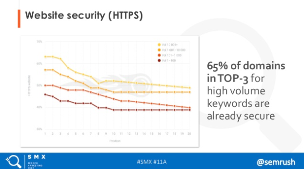 具有高查询量关键字的前3个网站使用https。虽然https并不是一个很大的排名因素,但是大势所趋,还是尽快把网站变成https更好。