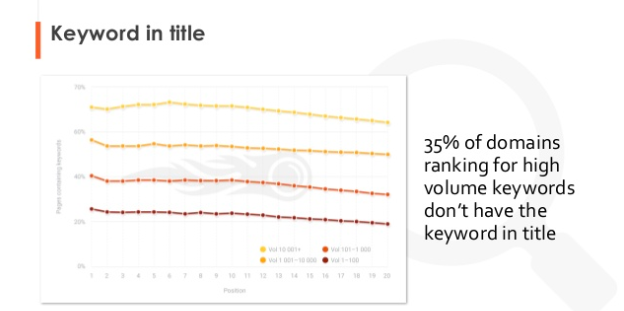 关键词数量多,页面顶部35%的页面标题不包含关键字。这表明Google算法在理解上下文和搜索意图方面已经取得了重大进展,或者在标题标记中包含关键字不再是排名的一个重要因素,或者两者都是。